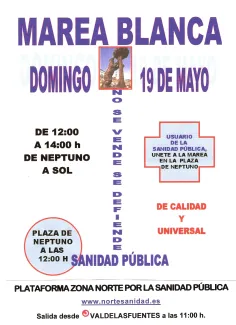 El Gobierno de Ignacio González, sigue empeñado en acabar con la Sanidad Publica a favor de sus negocios o los de sus conocidos, pero nos subestiman. La Marea Blanca sigue y se nos va a seguir oyendo hasta que este atropello se pare.