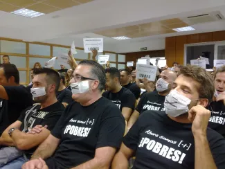 En el Pleno de esta mañana en el Ayuntamiento de San Sebastián de los Reyes, los empleados públicos han realizado su protesta ante los continuos recortes laborales que el Gobierno de la Nación ha aprobado hoy, entre otras desmesuradas medidas.