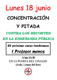 Los recortes serán efectivos para el próximo curso en todos los colegios e institutos de la CAM pero poco a poco nos vamos enterando de la subida de los comedores escolares, de las escasas becas de libros para el próximo año, de hecho todavía no hay ni convocatoria y por si fuera poco a la falta de profesorado le aña