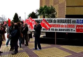 Ayer 8 de Enero un grupo de personas de IU Sanse nos desplazamos hasta la entrada del centro comercial La Vega del vecino municipio de Alcobendas para apoyar la concentración de la Sección Sindical de CCOO-Alcampo-La Vega.