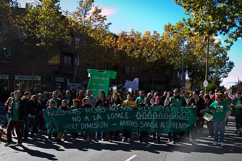 Bajo el lema "Nuestros hij@s no son recortables" miles de madres, padres y alumnos, junto a personal docente y no docente de los centros formativos de los dos pueblos andamos el espacio que separa los dos ayuntamientos en un ambiente festivo y reivindicativo; respondiendo a la llamada de las AMPAS de los dos pueblos, apoyados por organizaciones de ámbito muy diverso, inluidas las asambleas locales de IU de Alcobendas y San Sebastián de los Reyes.
