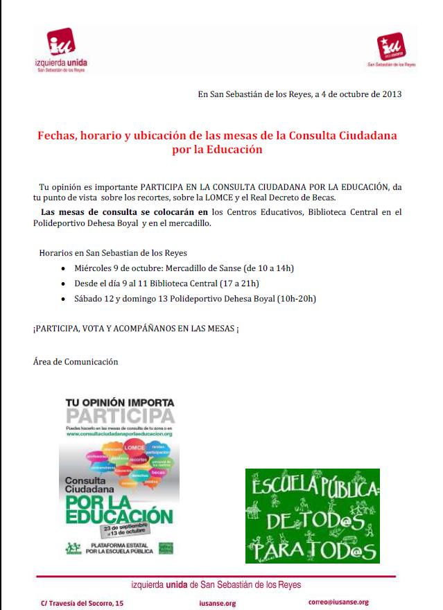 Tu opinión es importante PARTICIPA EN LA CONSULTA CIUDADANA POR LA EDUCACIÓN, da tu punto de vista sobre los recortes, sobre la LOMCE y el Real Decreto de Becas.