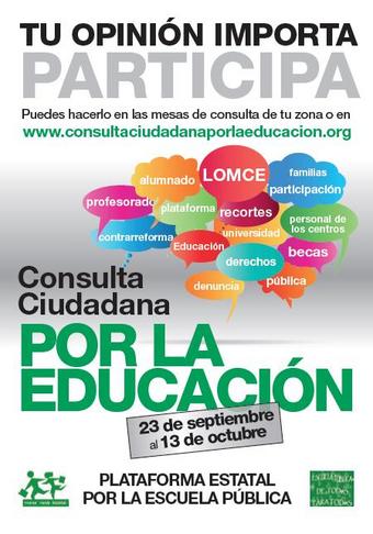 Es necesario que la ciudadanía diga lo que piensa. La consulta girará en torno a estas dos preguntas ¿rechaza los recortes en educación? Y ¿rechaza las políticas educativas del Gobierno Central?