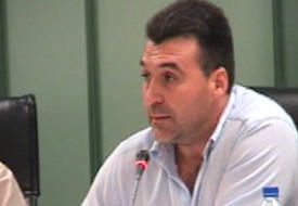 El concejal de Izquierda Unida de San Sebastián de los Reyes Javier Heras pregunta por los desprendimientos de planchas del techo del pabellón polideportivo.
