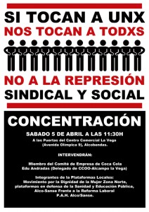 Izquierda Unida San Sebastián de los Reyes y los Jóvenes de IU Sanse apoyamos y nos lolidarizamos idad con el Delegado Sindical Eduardo Andradas, el cual ha sido condenado por una querella que interpuso un empresario del Centro Comercial. Adjuntamos enlace con los antecedentes de la noticia