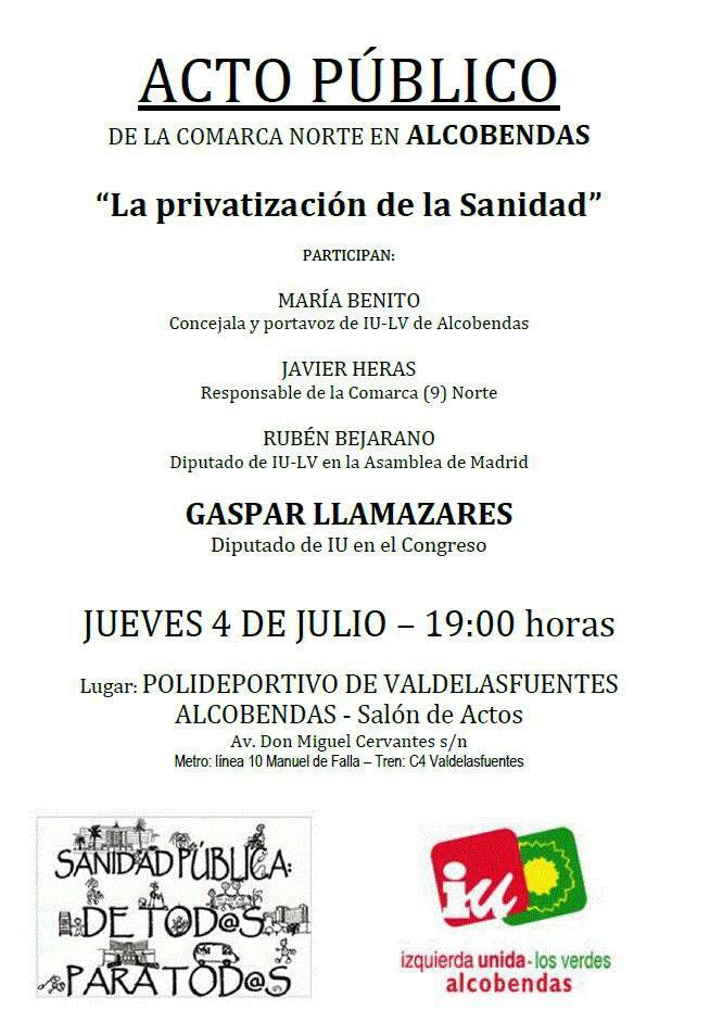 Acto público en Alcobendas sobre la privatización de la sanidad
